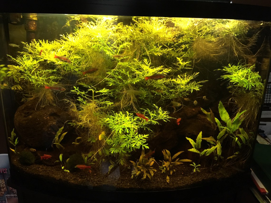 I recently rescaped that tank, thinning the plants, removing some wood, and adding an aquasoil. I might tech it up soon with some CO2 and PPS dosing.