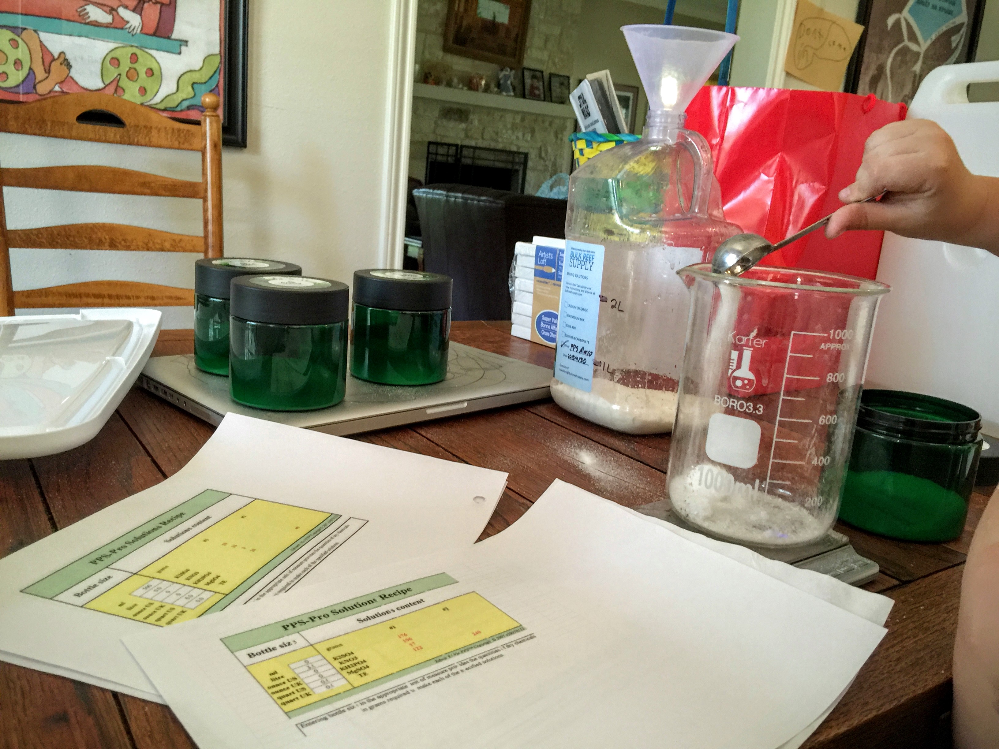 Mixing ferts with the kids.